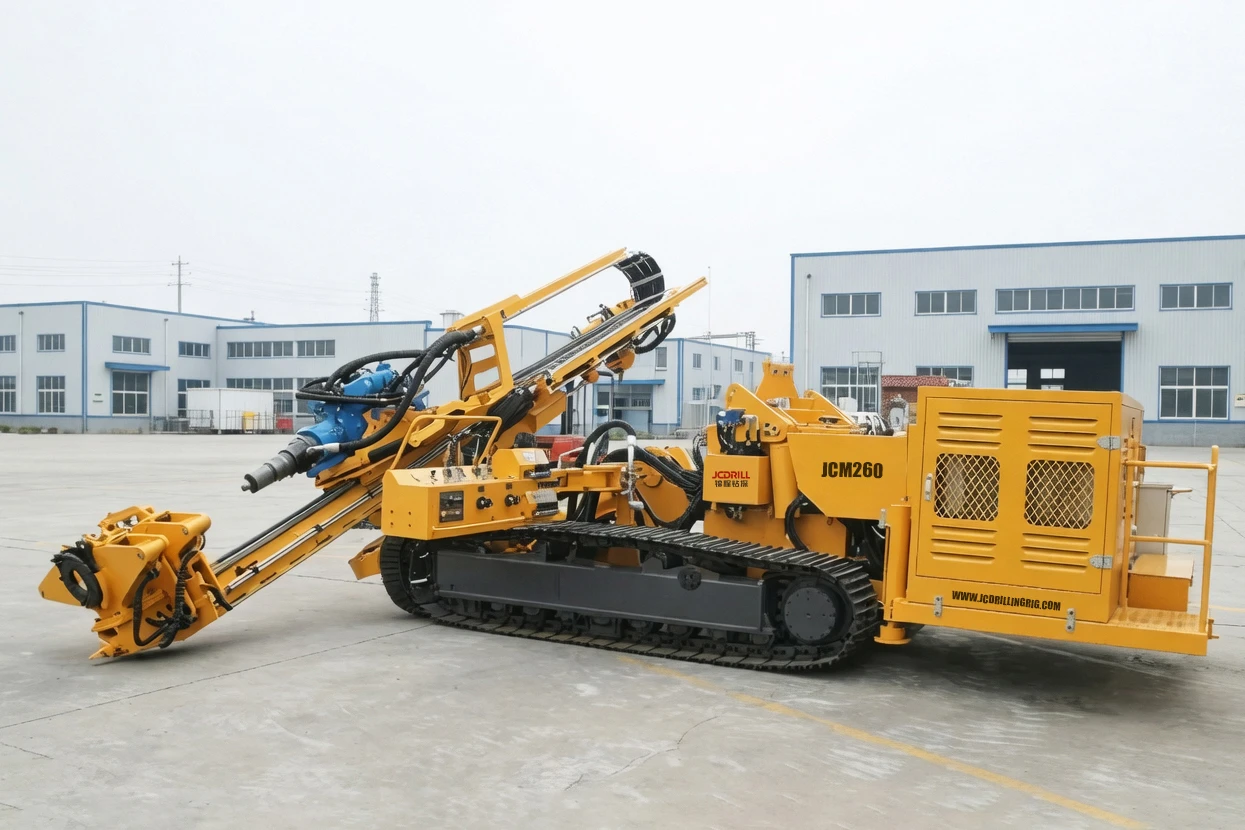 The JCM260 Full Hydraulic Anchor Drilling Rig is specially engineered for high-load anchoring operations in hard rock, pebble layers, and other complex geological formations. Featuring a rotary–percussive hydraulic drifter and reinforced structural design, the rig delivers exceptional stability and adaptability in demanding construction environments. Its robust crawler base and long feed stroke provide reliable support for deep anchoring, foundation treatment, and slope reinforcement projects.