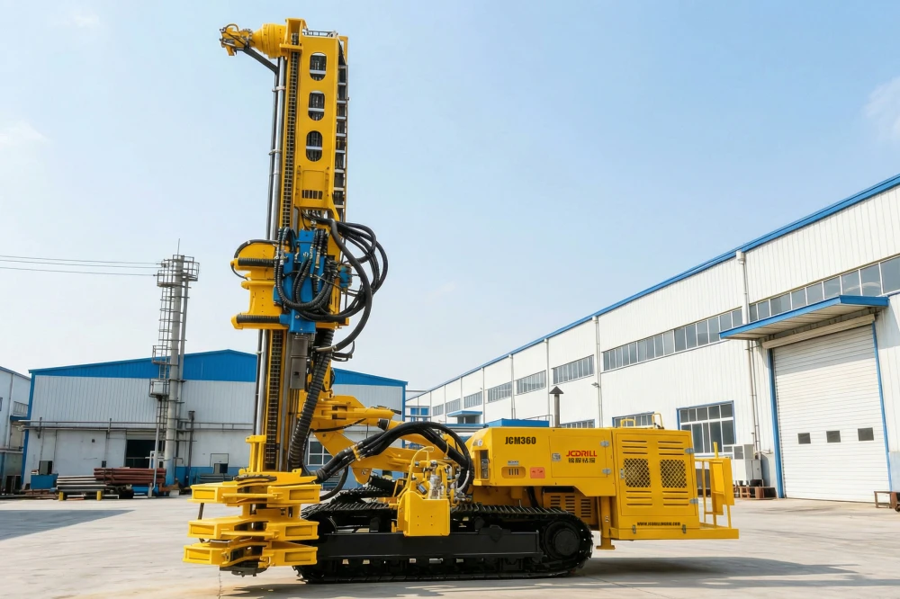 The JCM360 Full Hydraulic Anchor Drilling Rig is a high-power solution developed for large-diameter micro-pile construction and deep borehole drilling. Powered by a Cummins QSL8.9 engine and equipped with a high-torque hydraulic drifter, the rig delivers exceptional low-speed torque up to 27,000 N·m, ensuring stable and efficient drilling performance in hard rock and complex geological formations. Its impact–rotation compound drilling mode further enhances penetration capability for demanding engineering conditions.