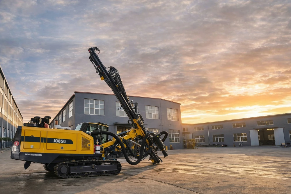 The JC850 integrates powerful hydraulics, precision controls, and durable components into a single drilling rig optimized for high productivity and low maintenance. Its Cummins engine and Atlas Copco air compressor provide reliable drilling performance with low fuel consumption. Advanced features like dual-fan cooling, floating shock-absorbing joints, and load-sensing hydraulics ensure stable operation in extreme conditions. The rig is equipped with a modern FOPS/ROPS-certified cab, ergonomic controls, and optional smart systems for digital mining and remote operation. With modular components, multi-angle drilling, and superior dust control, the JC850 meets the demanding requirements of modern quarrying, mining, civil engineering, and infrastructure projects.