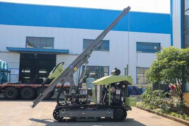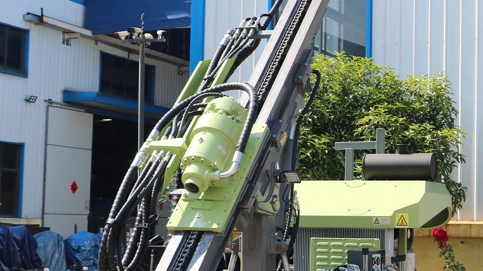 The SP619 is a compact, high-performance DTH drilling rig designed for shallow, large-diameter holes in municipal works, geothermal projects, pipelines, and small quarries. It supports φ90–φ400 mm drilling with up to 13,000 N·m torque and 80 rpm rotary speed. A 5,000 mm feed stroke, 900 mm extension, and strong feed/lift forces ensure smooth operation in unstable formations. Compatible with 1.0–2.4 MPa, 15–50 m³/min air systems, the SP619 delivers stable, efficient performance.