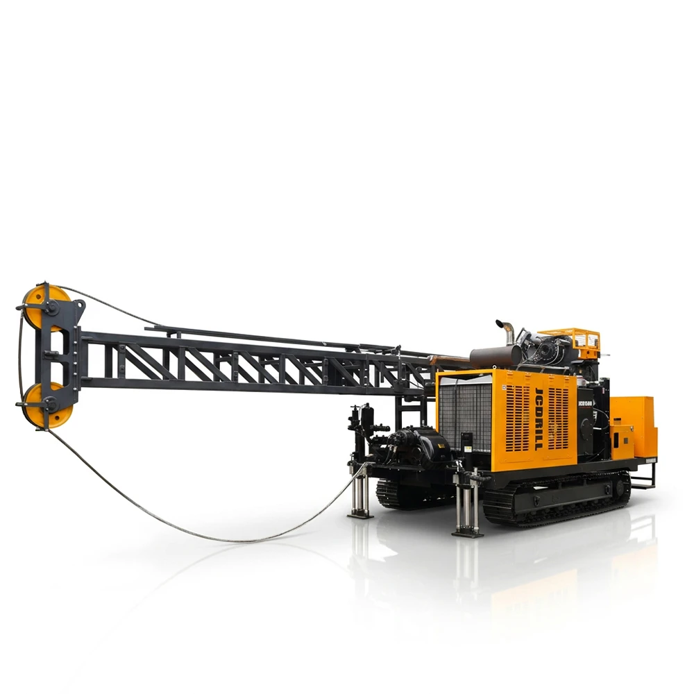 The JCD1500 Full Hydraulic Diamond Core Drilling Rig is a portable drilling rig designed for geological exploration and mineral prospecting. It supports wireline diamond core drilling with NQ, HQ, and PQ hole sizes, and drilling depths of 700 m, 1000 m, and up to 1500 m. Featuring a diesel-powered full hydraulic system and a high-torque rotary head (970–3930 Nm), the rig delivers stable performance and efficient penetration in complex geological conditions.